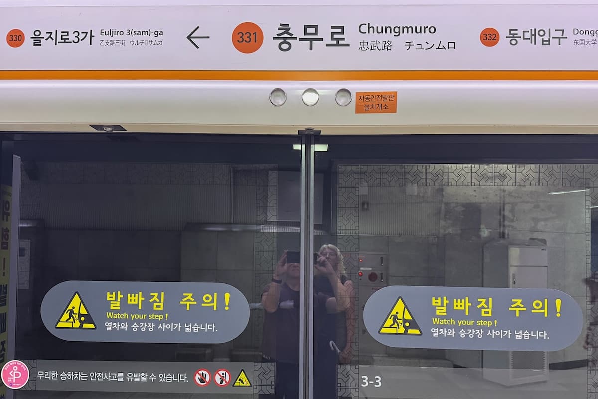 Seoul Metro signage on platform